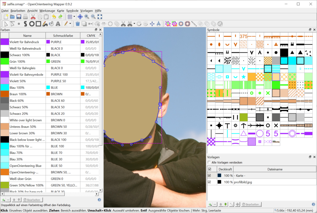 Jetzt kannst du direkt loslegen. Wähle ein Symbol aus und zeichne mit dem Werkzeug eine Kontur im Bild nach.